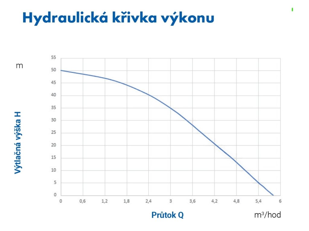 Čerpadlo má schopnosť čerpať vodu 50 mm od dna. Dodáva sa s 12 m káblom. Čerpadlo dosahuje maximálnu výtlačnú výšku až 50 m a čerpadlo má maximálnu hĺbku ponoru 8 m.